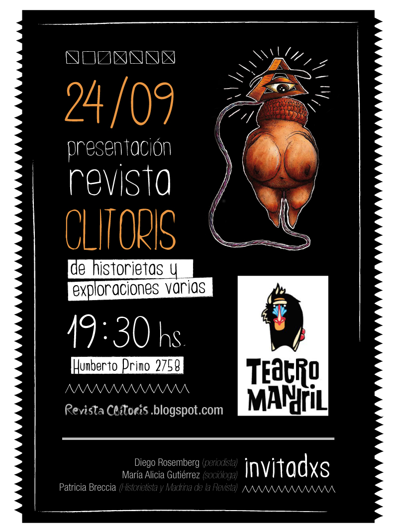 El lanzamiento de la Revista Clítoris. Historietas y exploraciones varias... tendrá lugar el sábado 24 de septiembre a las 19.30 en el Teatro Mandril, Humberto Primo 2758. Participarán del evento el periodista Diego Rosemberg, (coautor junto a Judith Gociol de La Historieta Argentina. Una Historia, Ed. De la Flor), la socióloga María Alicia Gutiérrez (autora del artículo "Todo con la misma aguja" incluido en el primer número de la revista) y la madrina de la revista, la historietista Patricia Breccia.